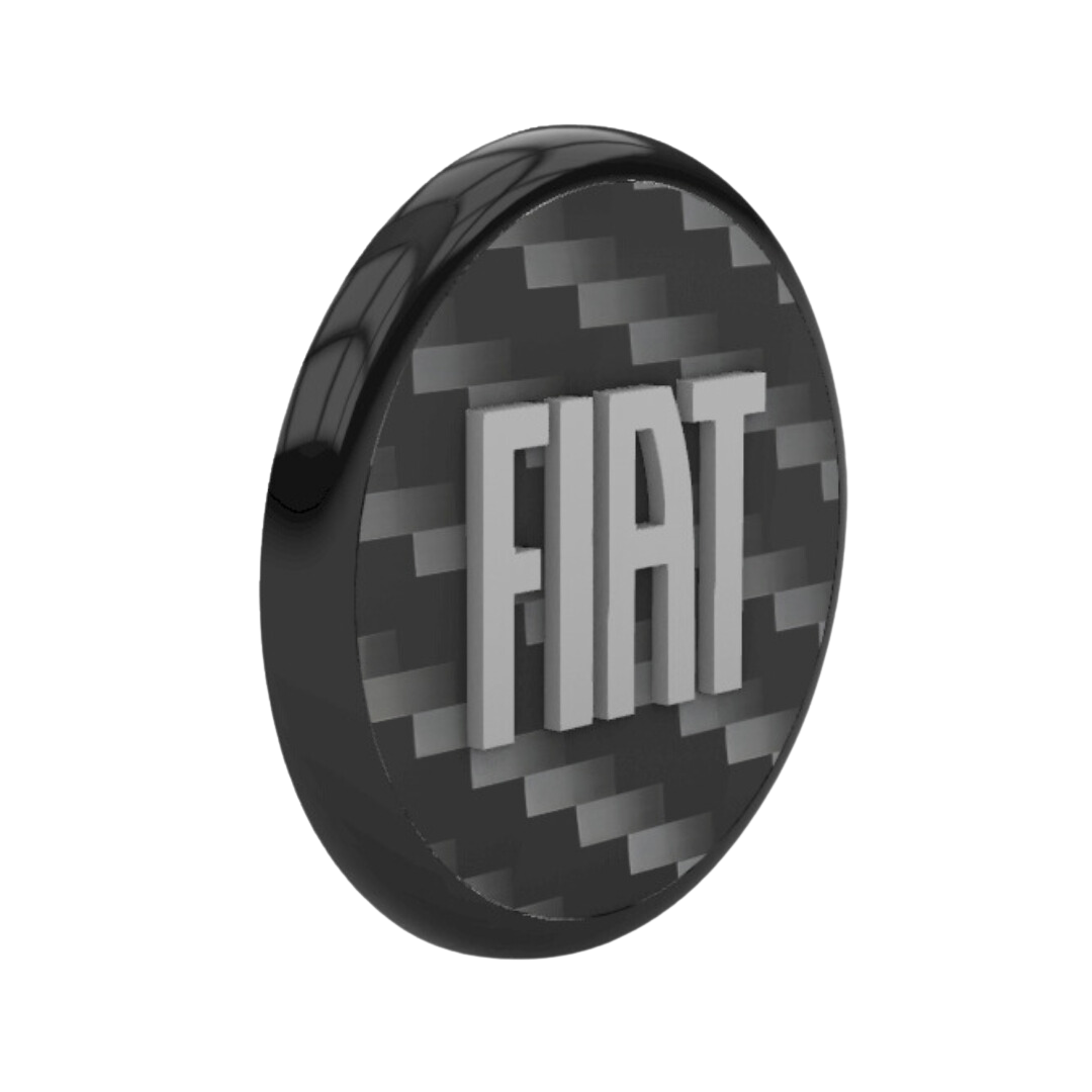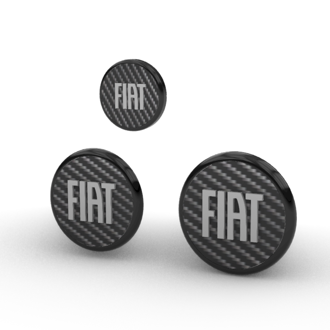 Abbiamo creato queste borchiette con una texture fibra di carbonio per lo sfondo e una texture glitterata per la scritta FIAT
