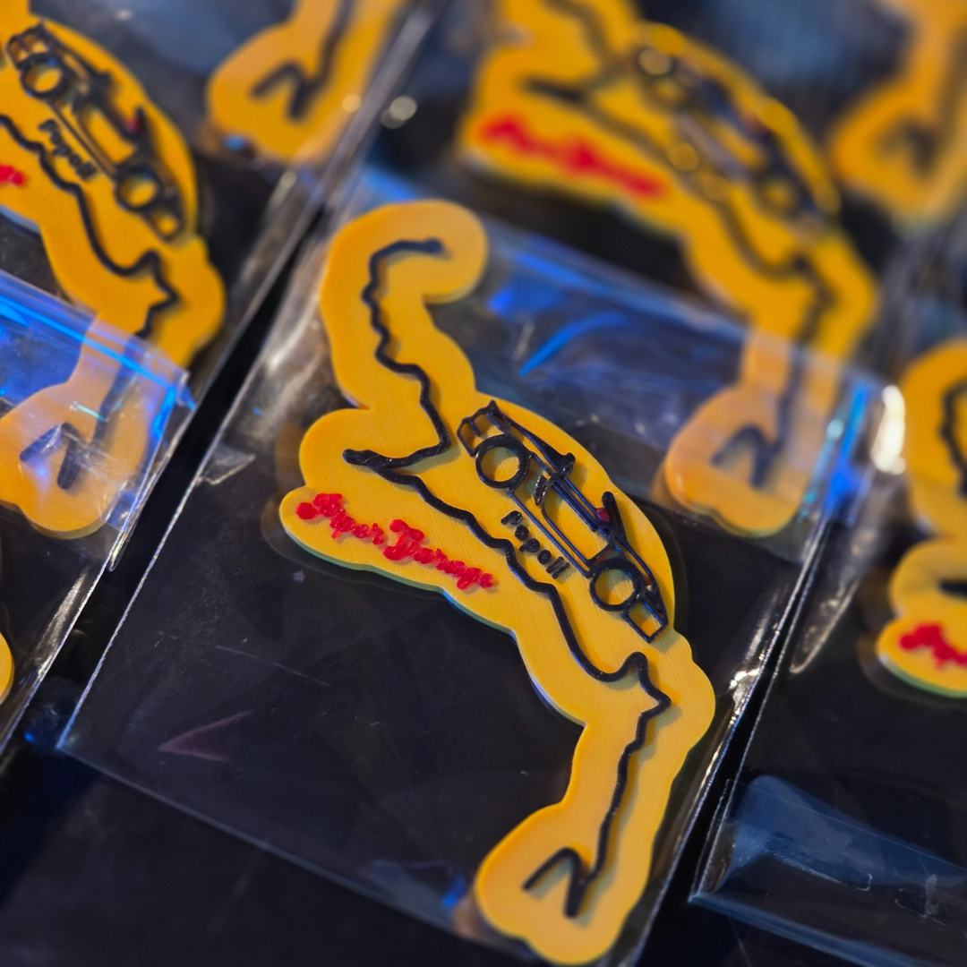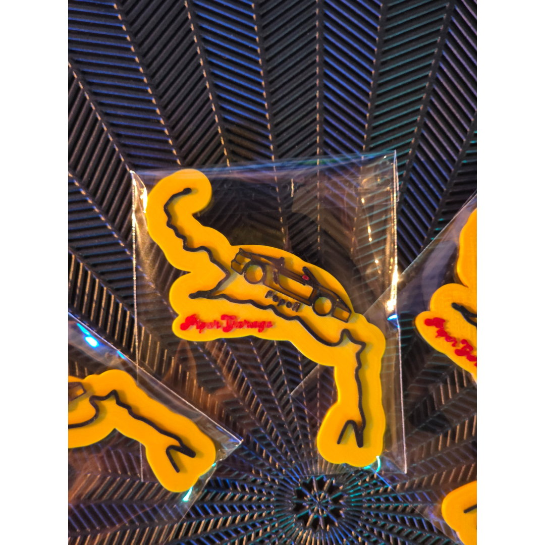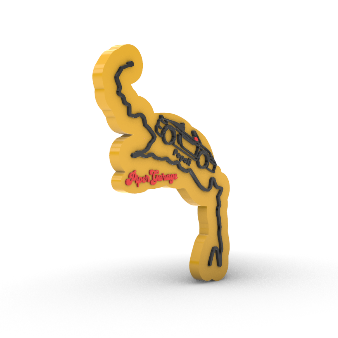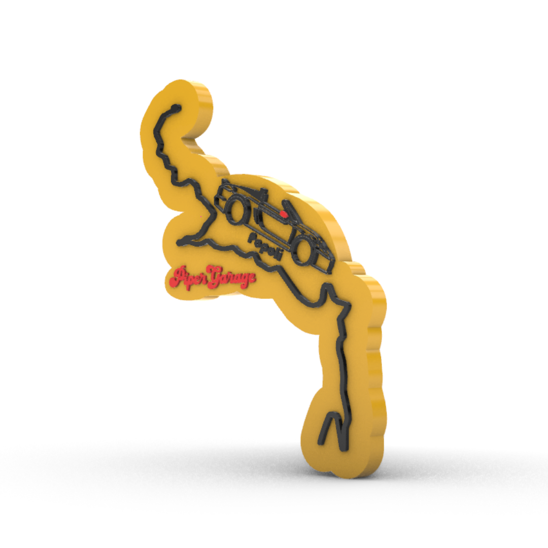 Abbiamo disegnato il tracciato percorso durante il raduno creando un contorno che seguisse la sua forma e abbiamo applicato un magnete nella parte posteriore